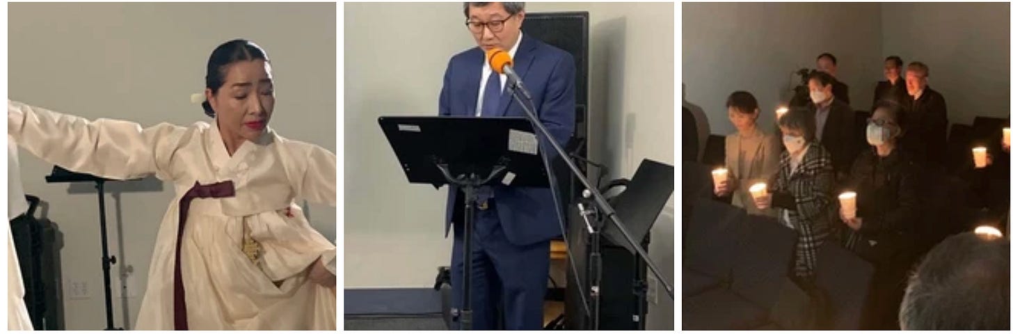 A memorial poem, “Before the Law,” by poet Heo Young-sun, was recited by Jennifer Eun Joo Kim. The commemoration concluded with a salpuri dance performed by Kang Eun-ju, an expressive and fitting finale for an event dedicated to mourning and remembrance. Sungyoon Park presided as master of ceremonies. Due to COVID-19, attendance in person was limited to pre-registered participants, while many others joined via Zoom.